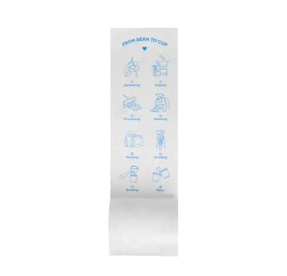 Il fratello Jinbao prende una strada diversa. Iniziamo con 90 - 100% pasta di legno pura e applicare un rivestimento termico stabile che accetti il calore in modo uniforme. Questo crea una soluzione fluida, Volto privo di pelucchi che mantiene le immagini nitite e leggibili. La ricompensa è evidente al bancone: Rulli termici stampati che forniscono numeri in grassetto, Loghi Crisp, e codici QR che scansionano al primo tentativo. Compare anche nel back office, dove il contrasto pulito rende la riconciliazione più rapida e i tassi di errore più bassi.