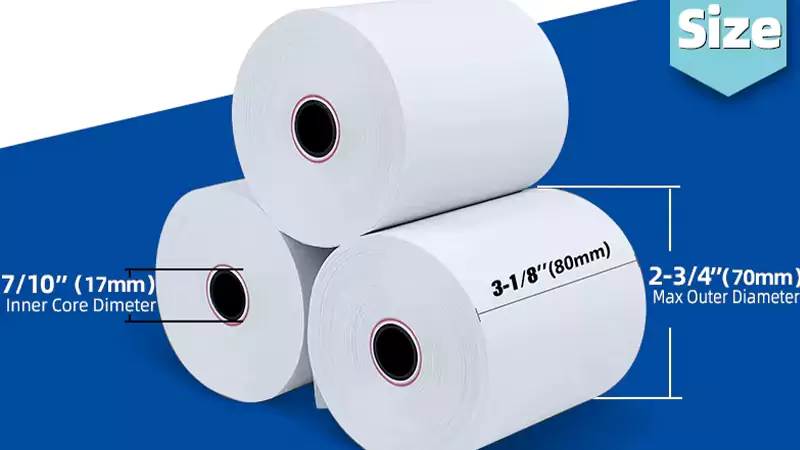 | Nome del prodotto: Rotolo di carta per registratore di cassa termico | Larghezza carta: 57millimetro, 80millimetro, 2 1/4 Pollici, 3 1/8 Pollici. |